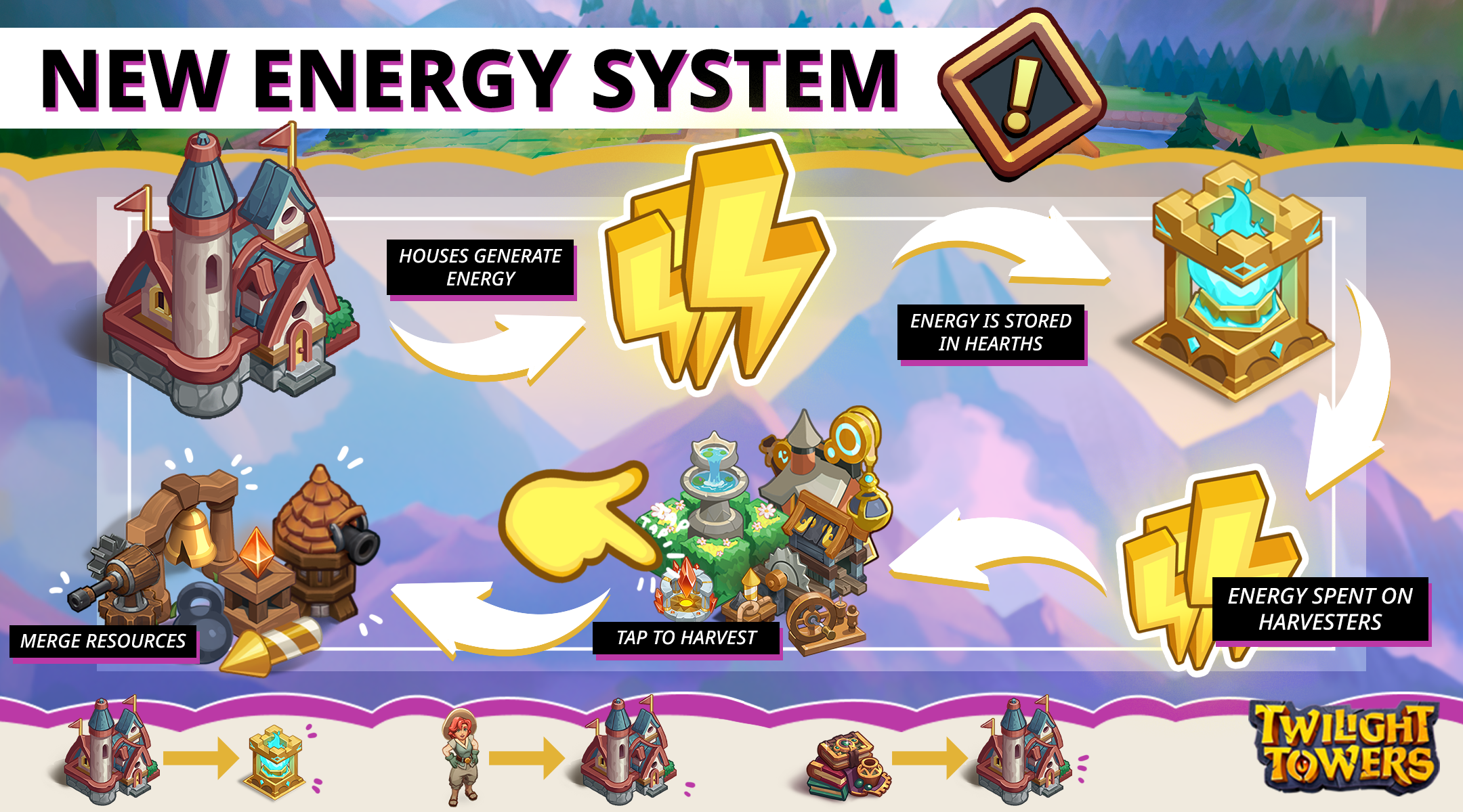 Also important to note that Energy cost and resources increase with Castle level (e.g. Castle level 4 = 4 Energy spent per harvest → 4 resources received).